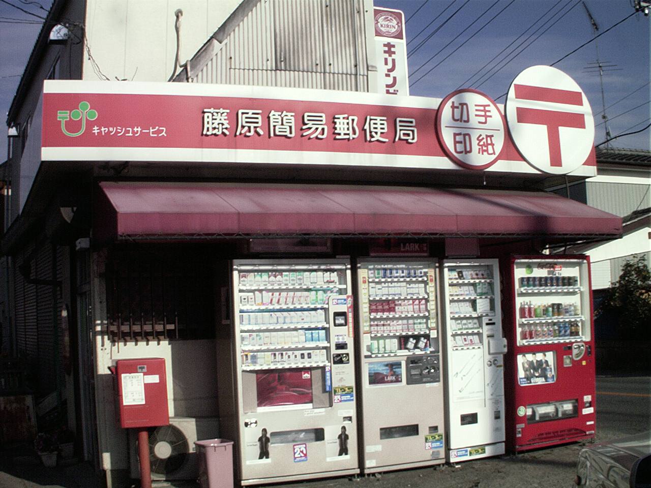 スーパーの駐車場の手前側にあります 特定局風の局舎です |